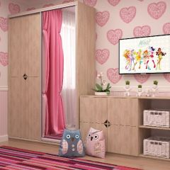 Столешницы столов и приставных тумб выполнены из МДФ толщиной 32 мм. Опоры столов, топы шкафов и подкатной тумбы выполнены из ЛДСП толщиной 32 мм, остальные элементы выполнены из ЛДСП 16 мм, задние стенки шкафов из ЛДСП.